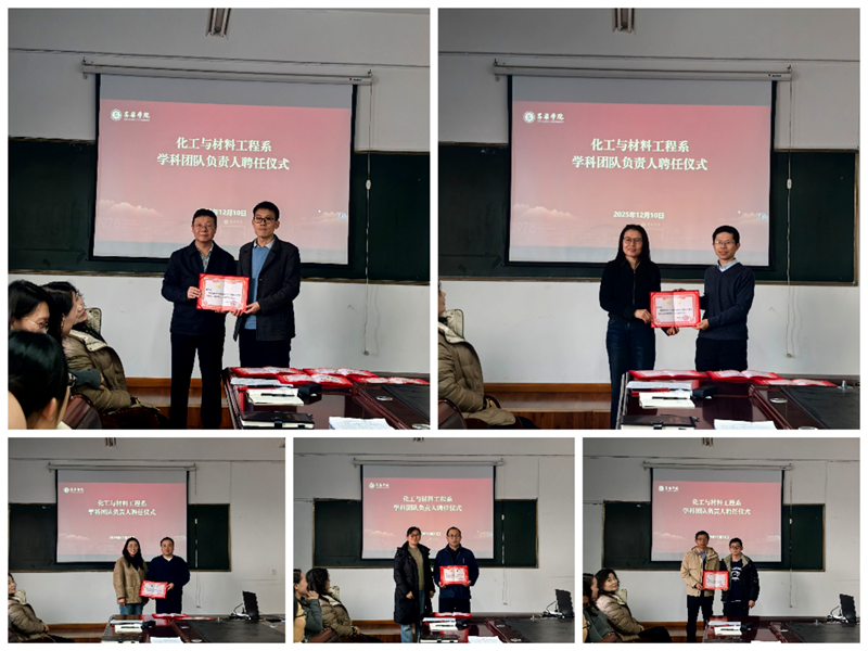 为深入贯彻学校“十五五”规划精神,强化学科建设与团队协作,推动“材料与化工”专业硕士学位点实现突破性进展,太阳集团tyc4633于12月10日下午3点在教学一区209会议室隆重举行学科团队负责人聘任仪式。系领导班子成员及全体教职工共同参加了仪式。