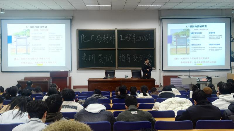 太阳集团tyc46332026届毕业生在考研初试中表现优异,过线人数达154人。为做好后续复试指导工作,系部依据博士教师学科背景,针对过线毕业生分配博士指导教师,确保全部覆盖,力求实现精准对接和有效指导。同时为了助力所有过线学子顺利备战考研复试、精准把握机会,系部于3月13日上午8:30在道德讲堂1C201举办2026届毕业生考研复试与调剂指导交流会。本次交流聚焦化学、材料等相关学科考研复试需求,邀请多位学科博士及优秀毕业生分享经验,为备考学子送上全方位、针对性的指导与建议。